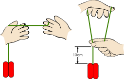¿Þ¼ÕÀ» À§·Î ÇÏ¿© ¿À¸¥¼Õ¾öÁö¿Í °ËÁö·Î ¿ä¿ä·ÎºÎÅÍ ¾à 10cm»óÀÇ ÁÙÀ» Àâ¾Æ ¿ª»ï°¢ÇüÀ» ¸¸µç´Ù.